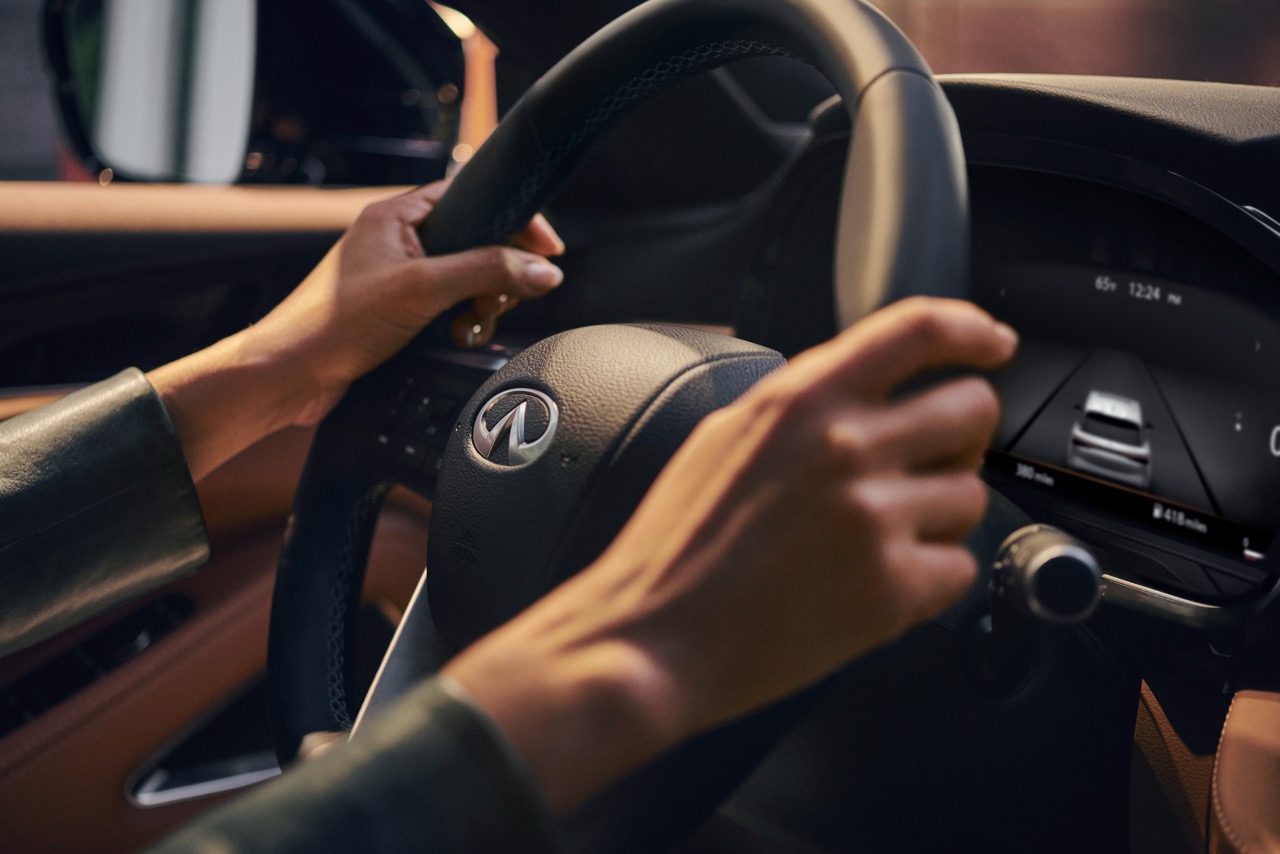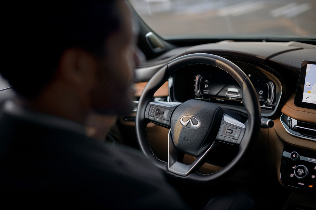 - Feature availability is dependent on vehicle model, trim level, packaging and options. Trial included with vehicle purchase. Consumer activation of INFINITI InTouch® Services package required. Compatible connected device and wireless network may be required. Refer to connected device’s owner’s manual for details. Late availability for some features. Driving is serious business and requires your full attention. Only use features and connected devices when safe and legal to do so. Some features, including automatic crash notification and SOS, are dependent upon the telematics device being in operative condition, its ability to connect to a wireless network, compatible wireless network availability, navigation map data and GPS satellite signal receptions, the absence of which can limit or prevent the ability to reach Customer Care or receive support. GPS mapping may not be detailed in all areas or reflect current road status. Never program GPS while driving. Only use Remote Engine Start and Remote Horn features in accordance with any laws, rules or ordinances in effect in your vehicle’s location. Some services and features are provided by and dependent on third party service providers and not INFINITI. Should such service providers terminate or restrict service or features, service or features may be suspended or terminated without notice or with no liability to INFINITI or its partners or agents. Services and features may require compatible cellular network provided by independent companies not within INFINITI or its partners’ or agents’ control. Cellular network signal strength may vary and may not be available in all areas or at all times. Services and features may not function if cellular network is unavailable, restricted, or terminated. INFINITI and its partners or agents are not responsible for associated costs or other third-party changes that may be required for continued operation due to cellular network unavailability, restriction, or termination (including equipment replacements/upgrades, if available, or roaming charges on alternative networks). Technology is evolving, and changes by independent companies are not within INFINITI’s or its partners’ or agents’ control. Enrollment, owner consent, personal identification number (PIN), and subscription agreement may be required to receive full suite of features and services. Trial periods (if applicable) begin on the date of vehicle purchase or lease of a new INFINITI. Trial periods and feature availability may be subject to change at any time and may be subject to early termination without notice. Required subscriptions may be sold separately for each available feature or service after trial period ends, and may continue until you call service provider to cancel. Installation costs, one-time activation.