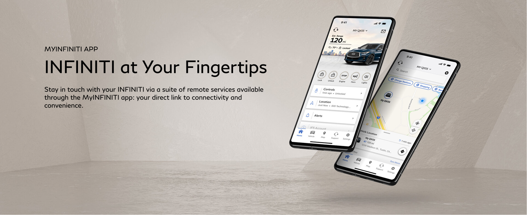 - Feature availability is dependent on vehicle model, trim level, packaging and options. Trial included with vehicle purchase. Consumer activation of INFINITI InTouch Services package required. Compatible connected device and wireless network may be required. Refer to connected device’s owner’s manual for details. Late availability for some features.Driving is serious business and requires your full attention. Only use features and connected devices when safe and legal to do so. Some features, including automatic crash notification and SOS, are dependent upon the telematics device being in operative condition, its ability to connect to a wireless network, compatible wireless network availability, navigation map data and GPS satellite signal receptions, the absence of which can limit or prevent the ability to reach Customer Care or receive support. GPS mapping may not be detailed in all areas or reflect current road status. Never program GPS while driving. Only use Remote Engine Start and Remote Horn features in accordance with any laws, rules or ordinances in effect in your vehicle’s location. Cellular network not available in Guam, Puerto Rico, U.S. Virgin Islands, Saipan or American Samoa.Some services and features are provided by and dependent on third party service providers and not INFINITI. Should such service providers terminate or restrict service or features, service or features may be suspended or terminated without notice or with no liability to INFINITI or its partners or agents. Services and features may require compatible cellular network provided by independent companies not within INFINITI or its partners’ or agents’ control. Cellular network signal strength may vary and may not be available in all areas or at all times. Services and features may not function if cellular network is unavailable, restricted, or terminated. INFINITI and its partners or agents are not responsible for associated costs or other third-party changes that may be required for continued operation due to cellular network unavailability, restriction, or termination (including equipment replacements/upgrades, if available, or roaming charges on alternative networks). Technology is evolving, and changes by independent companies are not within INFINITI’s or its partners’ or agents’ control.Enrollment, owner consent, personal identification number (PIN), and subscription agreement may be required to receive full suite of features and services. Trial periods (if applicable) begin on the date of vehicle purchase or lease of a new INFINITI. Trial periods and feature availability may be subject to change at any time and may be subject to early termination without notice. Required subscriptions may be sold separately for each available feature or service after trial period ends, and may continue until you call service provider to cancel. Installation costs, one-time activation fee, other fees and taxes may apply. Fees and programming subject to change. Feature may be subject to age restrictions in some areas. Subscriptions governed by service provider’s subscription agreement, terms and conditions and privacy statements available at service provider’s website. Text rates or data usage may apply. INFINITI InTouch® with WiFi terms and conditions of subscriber agreement apply.Trial is included with vehicle purchase on equipped new INFINITI vehicles. Once your vehicle has exceeded the coverage parameters of the roadside assistance benefits included with your vehicle purchase, you will be responsible for any charges incurred by obtaining roadside assistance for your vehicle. For complete information concerning warranty coverage, conditions and exclusions, please see your INFINITI dealer and read the warranty information booklet.The INFINITI names, logos and slogans are trademarks owned by or licensed to Nissan Motor Co. Ltd. or its North American subsidiaries. Other trademarks and trade names are those of their respective owners.For important safety information, system limitations, and additional operating and feature information, see dealer, owner’s manual, or https://www.infinitiusa.com/intouch/legal.html