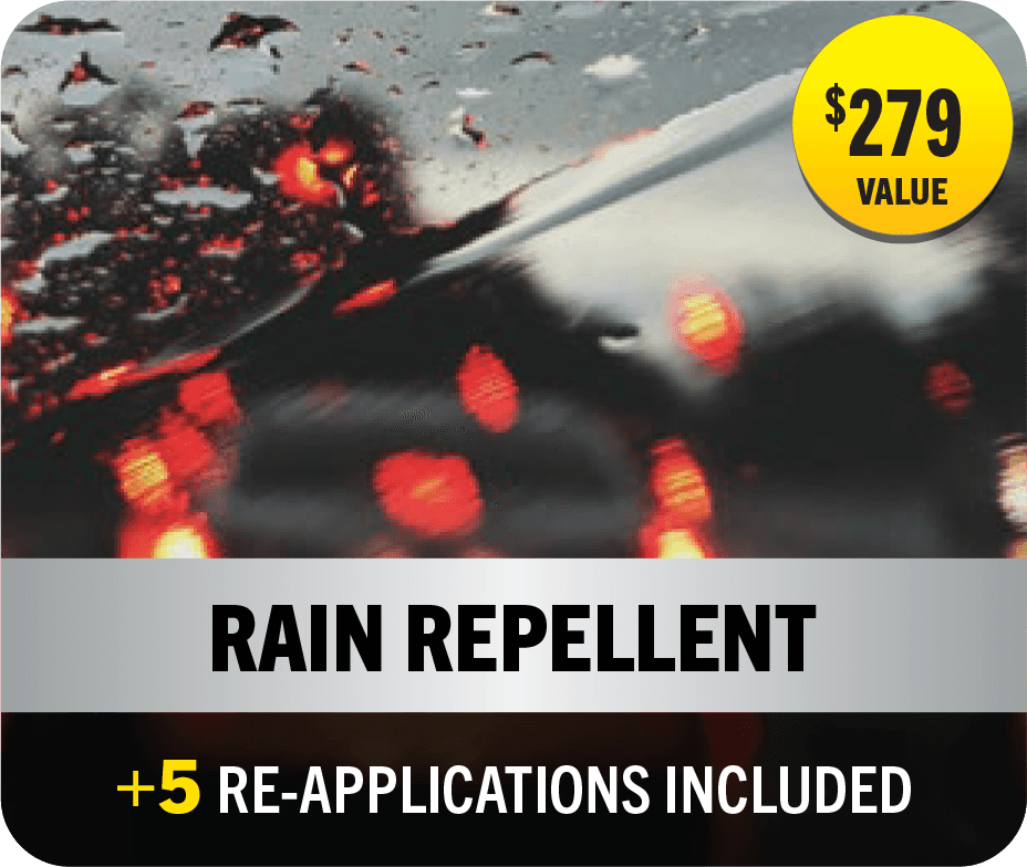 The windshield has been treated with a special military-grade Rain Repellent which adds a hydrophobic coating that quickly repels water and provides better driving visibility in the rain. Includes five (5) FREE re-applications.