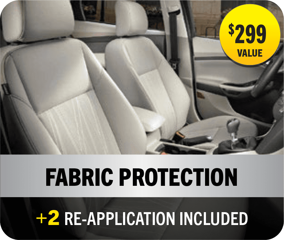 Exterior painted surfaces have been treated to protect against UV rays and other environmental pollutants for 12-months/12,000 miles. The interior has been treated to prevent stain absorption in carpets and fabric seating surfaces. Includes two (2) FREE product re-applications.