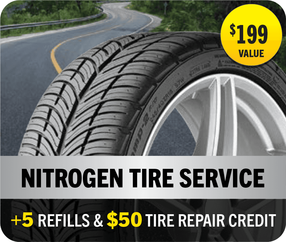 Nitrogen inflated tires lose air 3-to-4 times slower than oxygen; promoting better fuel economy and reducing wear. Includes a single-use $50 credit towards tire repair or replacement during the 1st year and five (5) FREE nitrogen refills.