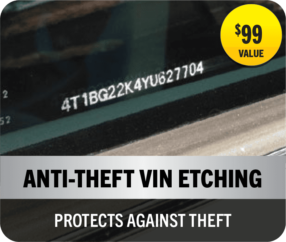 The Vehicle Identification Number (VIN) has been etched on select windows as a theft deterrent and can be used by law enforcement to identify your vehicle in the event it is lost or stolen.
