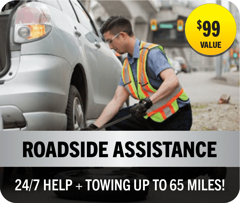 Includes on-demand, 24/7 roadside assistance. If you have a flat tire, dead battery, are out of fuel, locked out or need a tow, help is just a phone call away. Track the arrival time LIVE from your smartphone.
